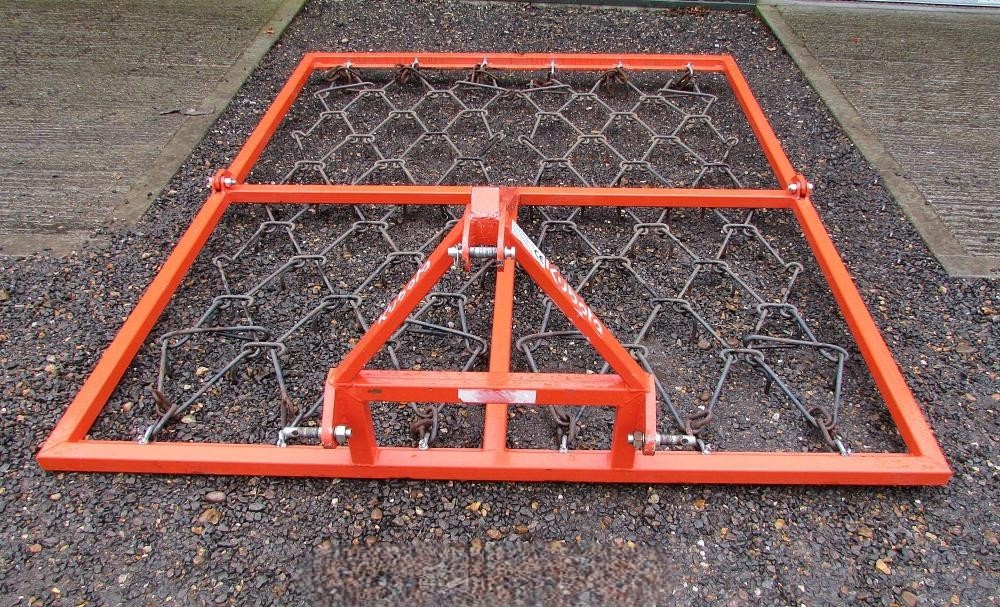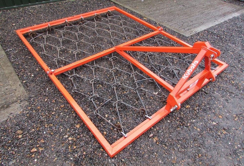Industrial-Strength Cultivation for Dense Pasture. The Kubota MH1 is a high-performance 1.98m (6.5ft) mounted chain harrow specifically engineered for heavy grassland and intensive paddock management. Weighing 160kg, this unit provides superior down-pressure, ensuring the high-carbon steel tines penetrate thick thatch and compacted soil for maximum aeration. Designed for tractors with Category 1 & 2 linkage, the MH1 features a reinforced professional frame built to withstand the rigours of commercial agricultural use, making it the definitive tool for Isle of Wight farmers and estate managers seeking deep rejuvenation of high-output grassland.