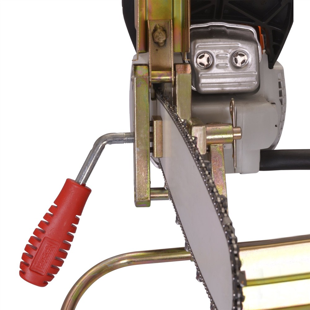 - Chainsaw Clamp: Ultra-safe vice fits any chainsaw.